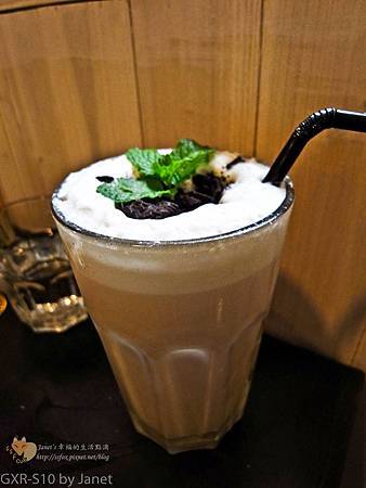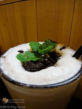 近看~白色的是奶油 黑色的是OREO吧?上面放著新鮮薄荷葉