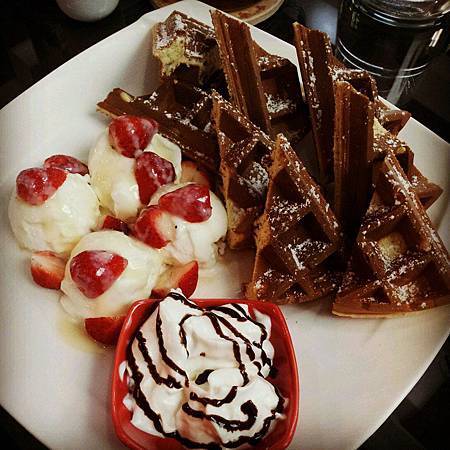 鬆餅外層很酥脆 但是裡面很溼潤
